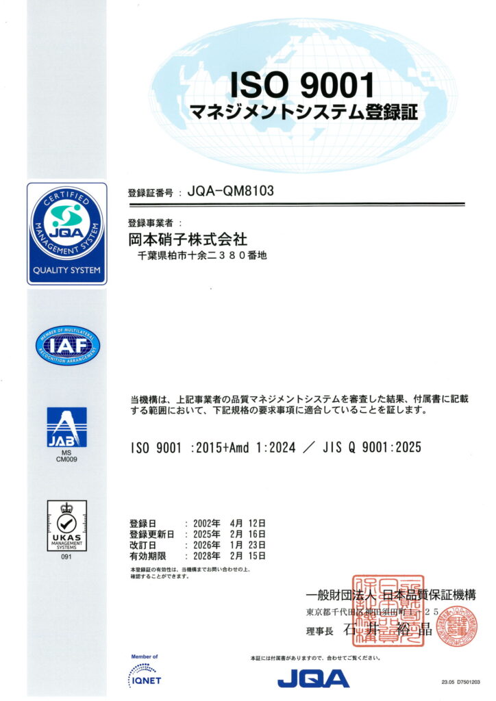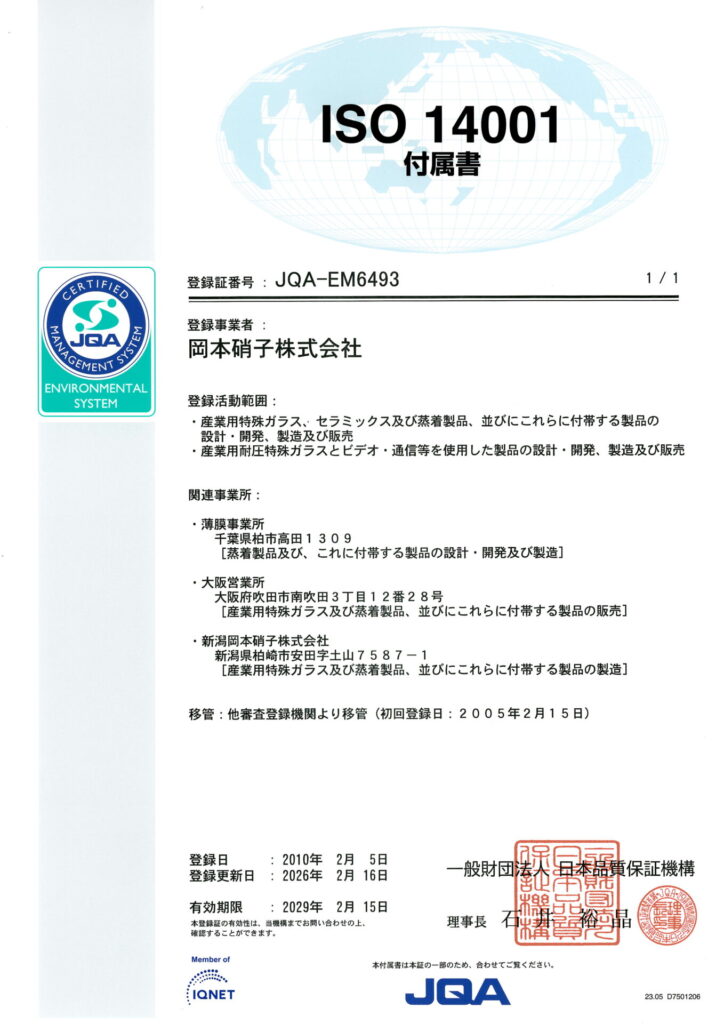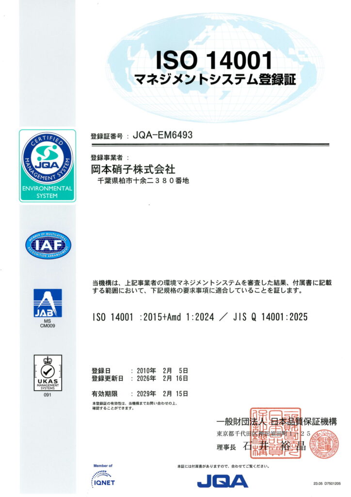 - 顧客の要求事項に対応した商品を提供するとともに、常に顧客満足度及び環境保全の向上を図るように努め、ISO9001ならびにISO14001の規格要求事項を満足する統合マネジメントシステム(IMS=Integrate Management Systems)の有効性の継続的な改善を推進する。