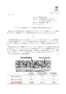 サーマルナイト添加窒化アルミニウム放熱基板の初期材料評価合格のお知らせ(PDF形式)[1頁/494KByte]